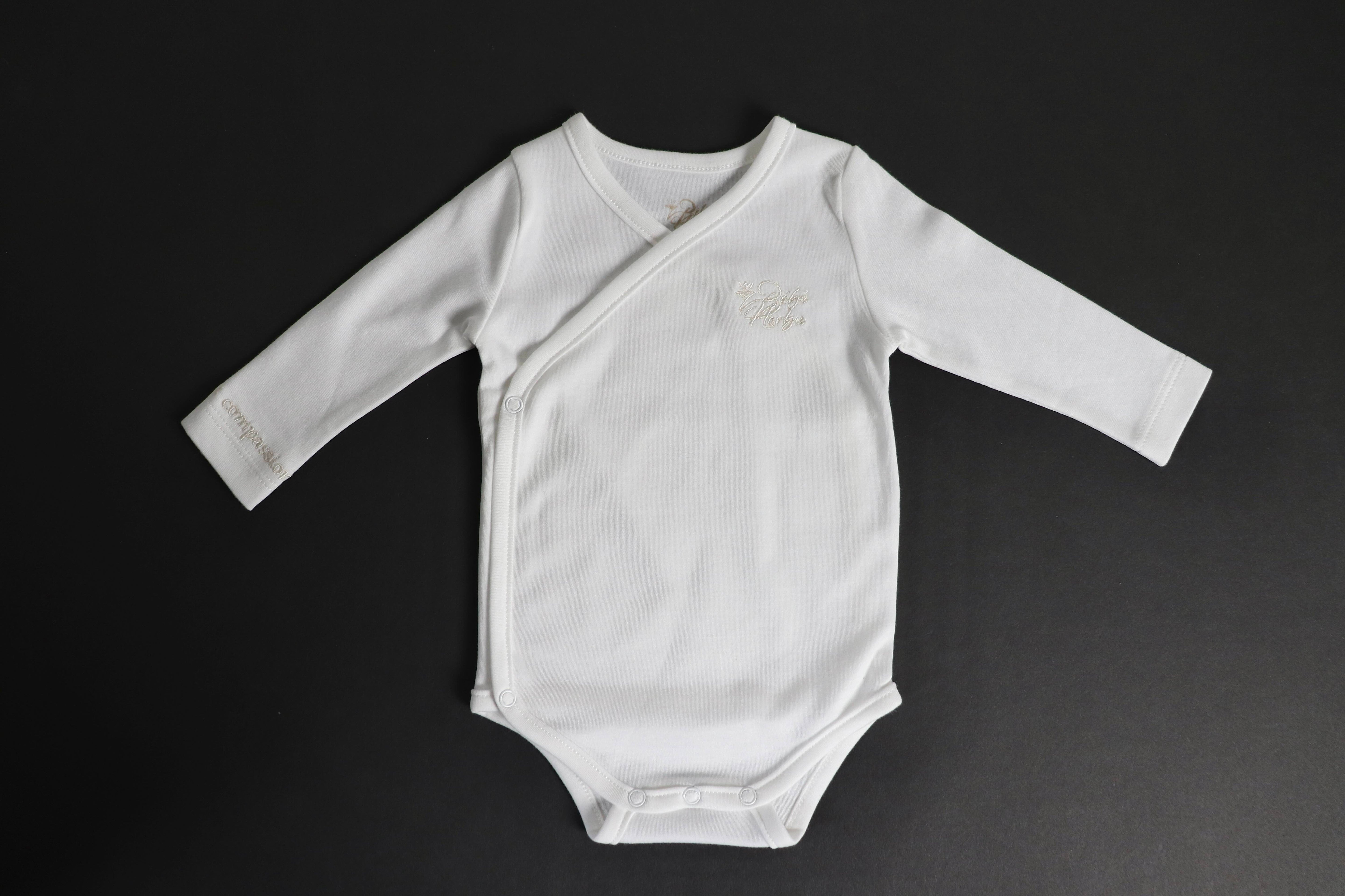 Wrap your little one in the luxurious comfort of our Kimono Bodysuit in Ecowhite. Crafted from the finest 100% organic pima cotton, this bodysuit is soft against delicate skin, ensuring ultimate comfort for your baby.