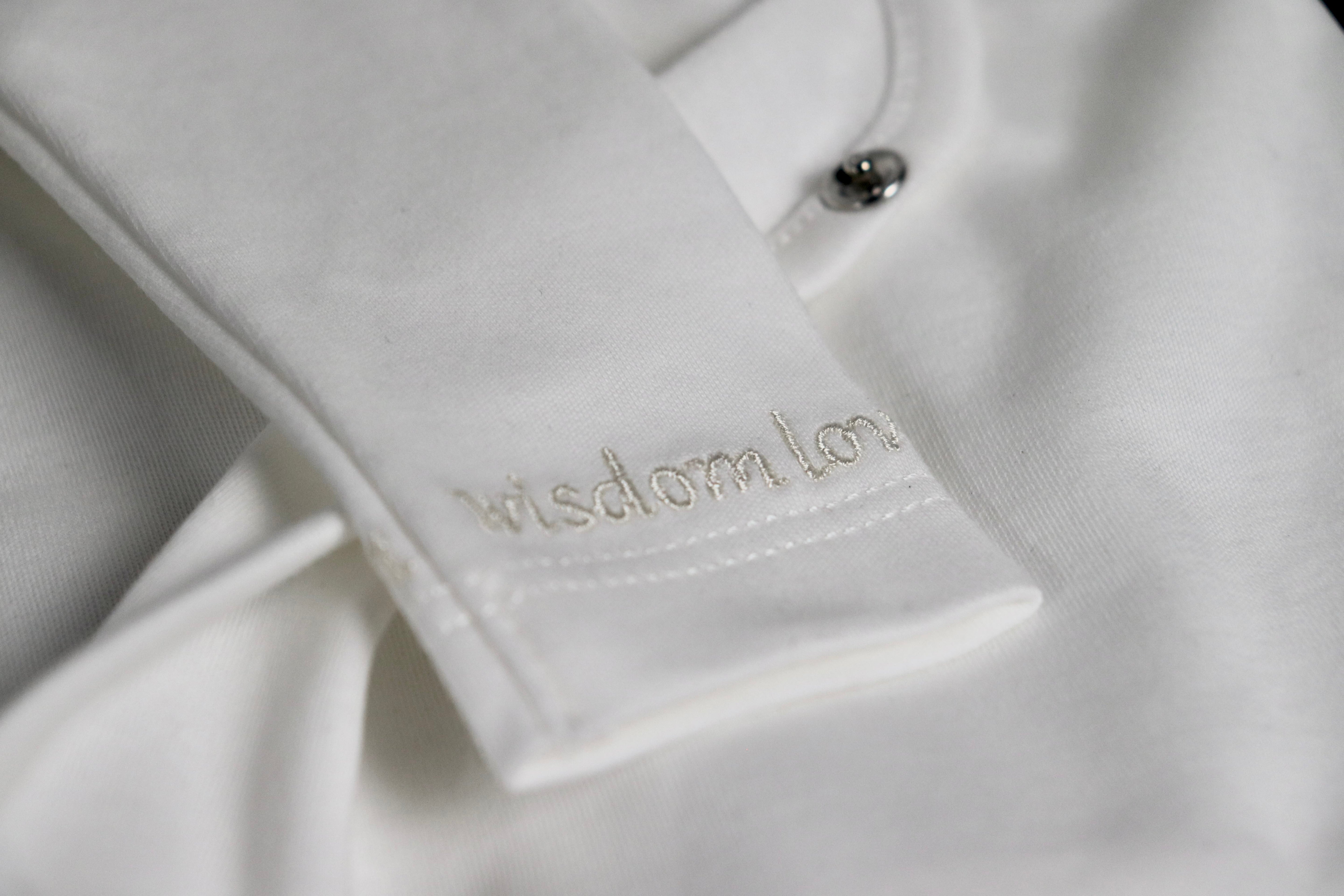 Embroidered Details: Featuring an embroidered logo on the chest and the heartfelt words "Wisdom, Love, Compassion" delicately embroidered on the left wrist, this bodysuit embodies the values we hold dear.
